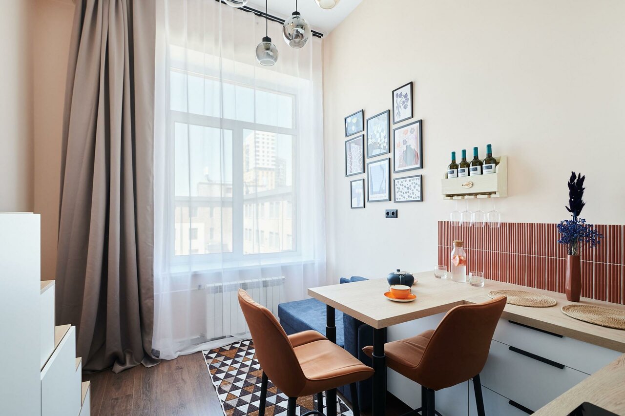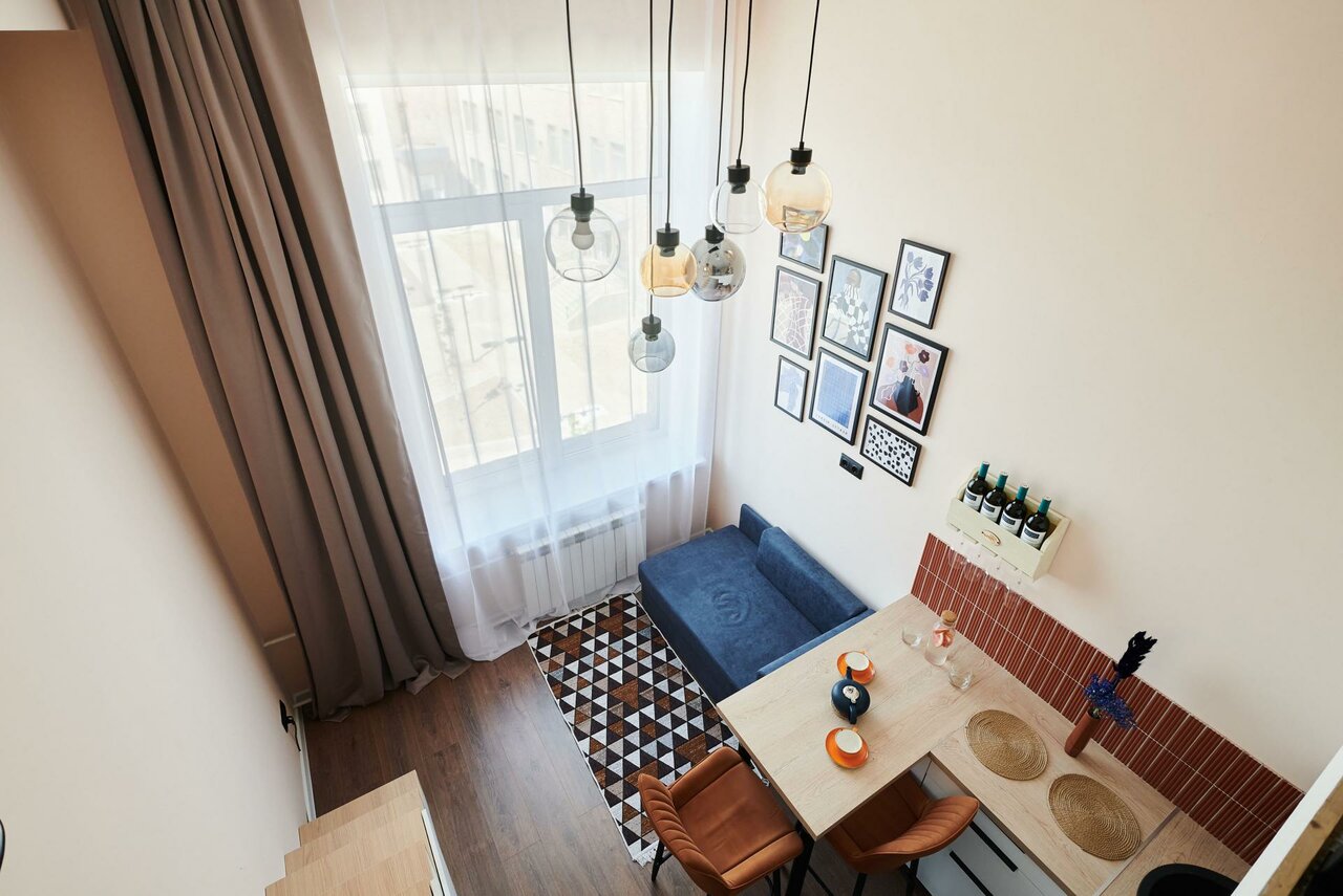 На фотографиях представлены проекты меблированных студий.