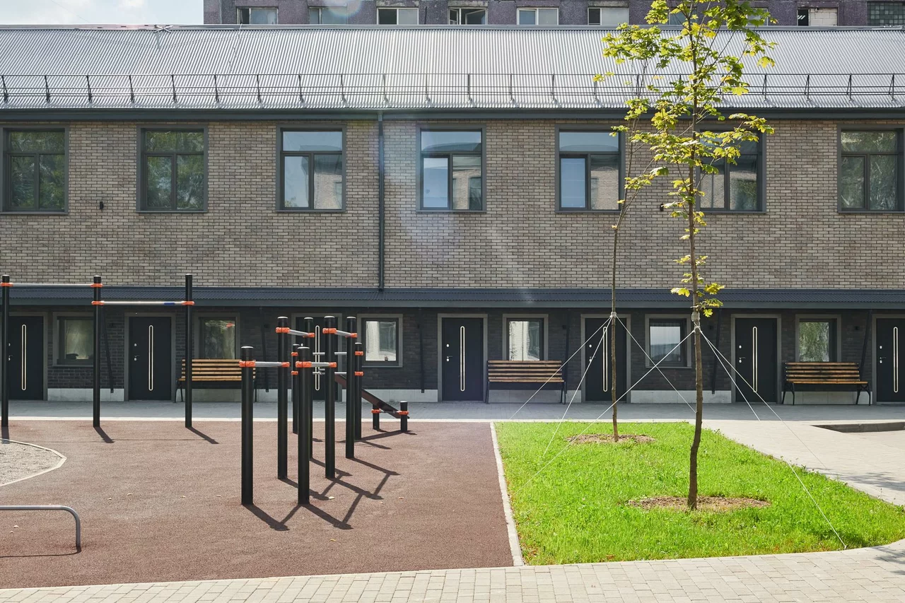 На территории: Три стильных корпуса. Собственная парковка на 125 мест. Лаунж-зоны, воркаут-площадки, теннисные столы. Фитнес-клуб, коворкинг, кофейня, кладовые и коммерческие помещения в цоколе.