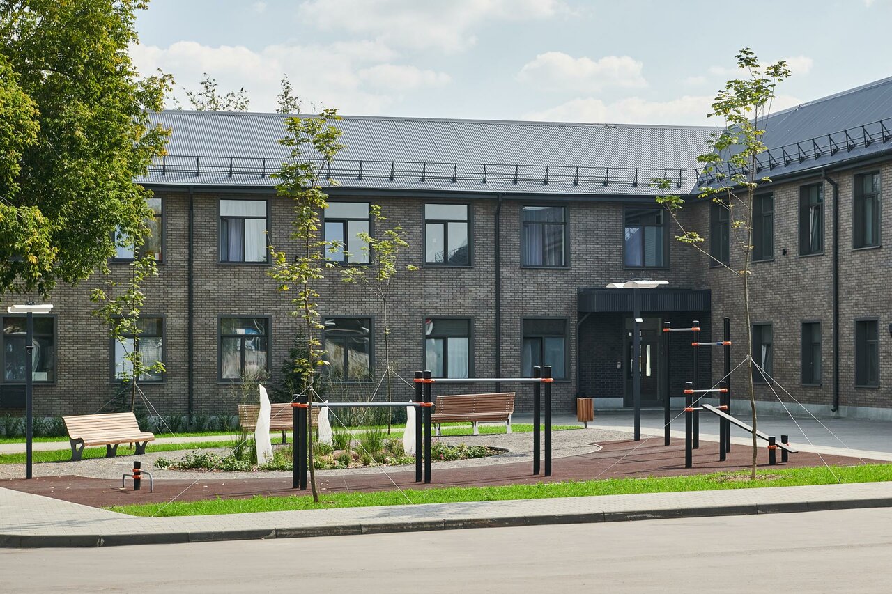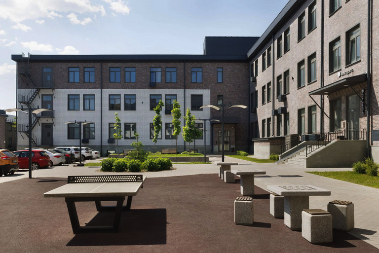 Закрытая территория располагает собственной парковкой на 125 м/м, лаунж зоной, workout площадками, теннисные столы и зеленые зоны. Охрана 24/7 и пропускная система.