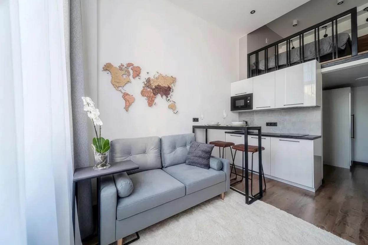 На фото представлен пример студии после меблировки.