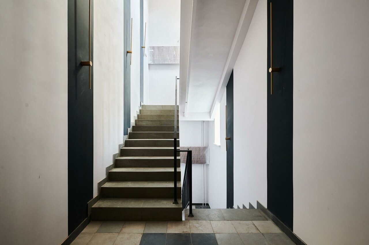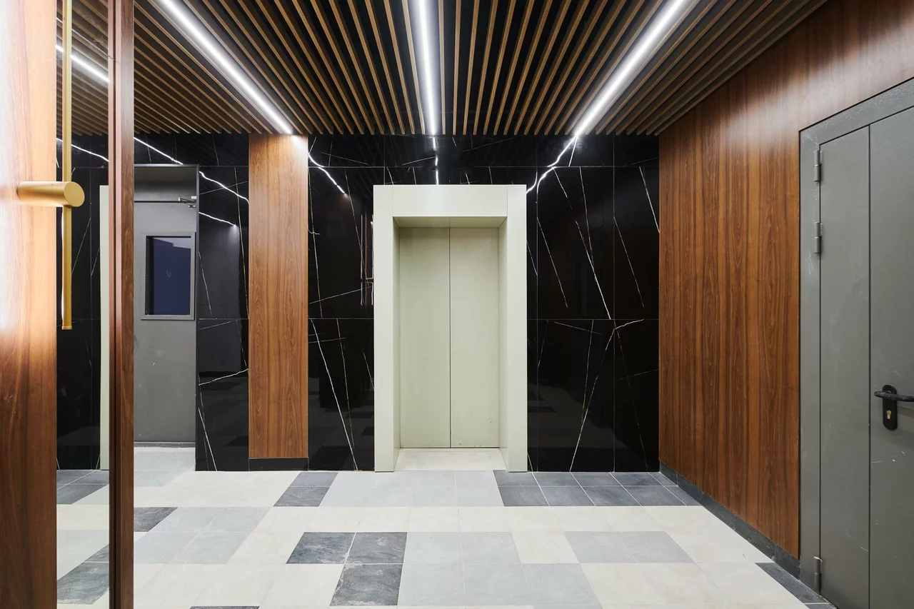 Закрытая территория располагает собственной парковкой на 125 м/м, лаунж зоной, workout площадками, теннисные столы и зеленые зоны. Охрана 24/7 и пропускная система.