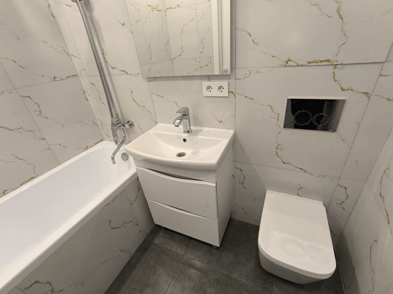 В санузле тёплый пол и современная сантехника