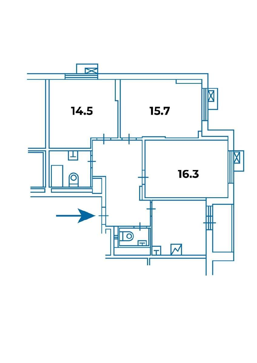 По бокам квартира граничит с соседями в маленькой комнате