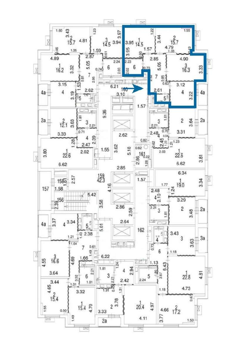 На этаже 8 квартир. Четыре лифта, работают бесперебойно.