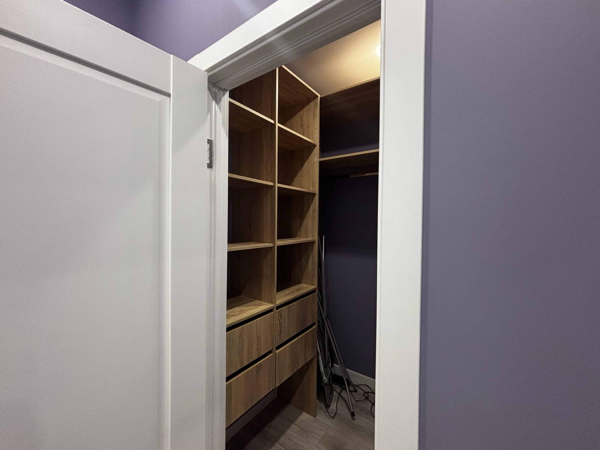 Комната: Двуспальная кровать, прикроватные тумбы, шкаф, телевизор.