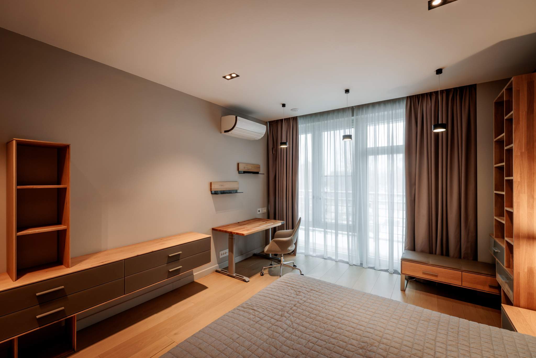 Климат без сквозняков: кондиционеры Daikin с притоком уличного воздуха в каждой комнате + конвекторы в полу. Пожарная сигнализация «Болид» - безопасность на уровне небольшого отеля.